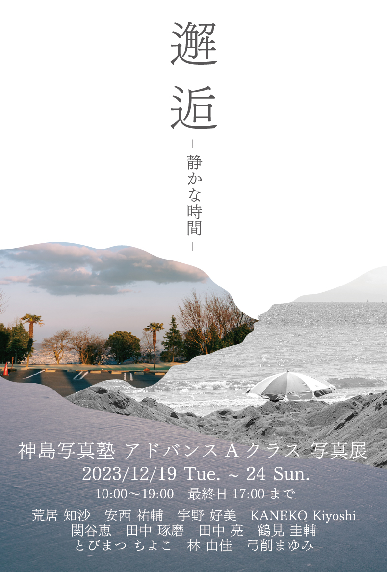 2023 12月 【12/19-24】神島写真塾 アドバンスAクラス写真展「邂逅-静かな時間 -」【展覧会概要】▼タイトル: 邂逅-静かな時間 – ▼作家:神島写真塾 アドバンスAクラス ▼日程:12月19日(火)〜12月24日(日) ▼時間:10-19時、最終日は17時まで ▼入場料:無料 ▼出展者:荒居知沙 / 安西祐輔 / 宇野好美 / KANEKO Kiyoshi / 関谷恵 / 田中琢磨 / 田中亮 / 鶴見圭輔 / とびまつちよこ/ 林由佳 / 弓削まゆみ Post Share EVENT一覧