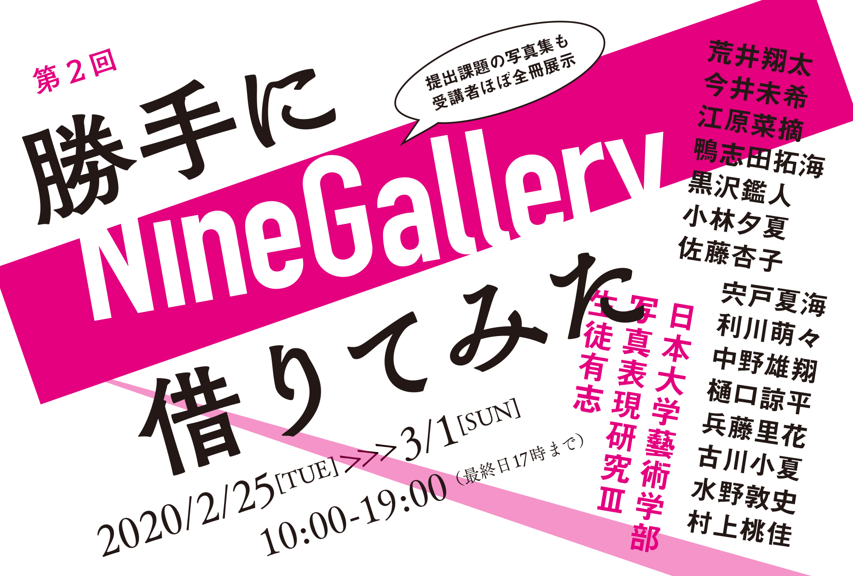 ▼タイトル:日本大学藝術学部写真表現研究Ⅲ生徒有志 第2回「勝手にナインギャラリー借りてみた」
