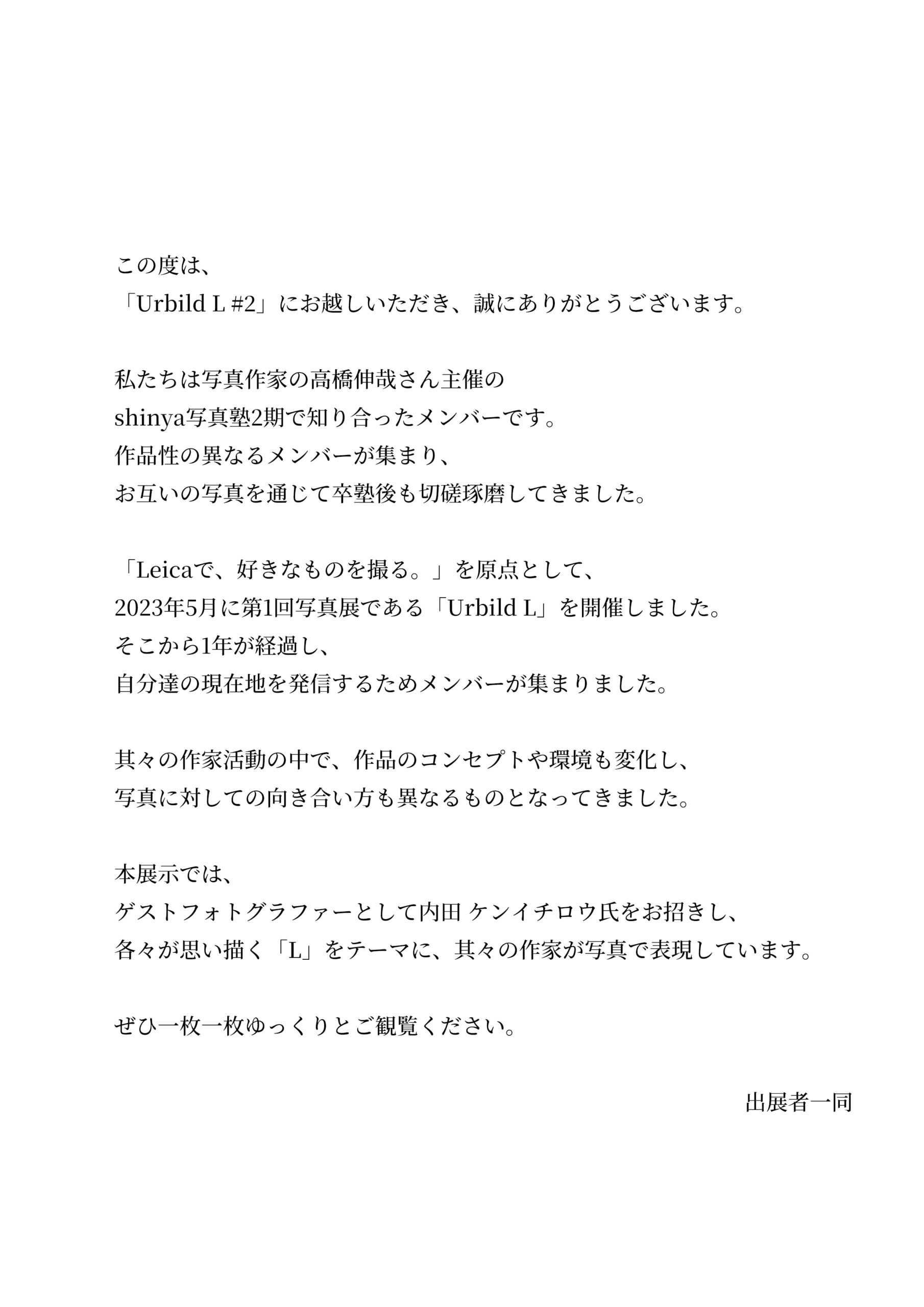 ▼タイトル:Urbild L photogaphers PHOTOEXHIBITION