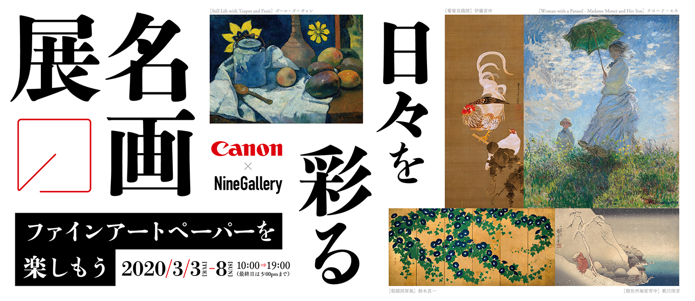 誰もが知る名画を、あなたの暮らしの中にも。本展示会では、キヤノンの無料印刷素材サイト「Creative Park(クリエイティブパーク)」で紹介している世界の名画、20~30点を展示販売いたします。誰もが知る世界の有名作家の作品を、「キヤノンインクジェットプリンタ」で高精細プリント。作品は全て「Creative Park」からインテリアとして楽しみやすい作品をセレクト。アートディレクターでナインギャラリー主宰でもある三村漢が、キヤノンが番組提供しているTBSテレビ「世界遺産」の広告でおなじみの名画印刷を実際に再現。作品に合うファインアート用紙での印刷、額装までを監修します。展示をご覧いただき、イメージが湧いたらご自身でサイトを利用して作品を制作していただくことも、もちろん展示品をご購入いただくことも可能です。「おうちにインテリアとして作品を飾りたいけれど、どんな作品を飾ったら良いかわからない」「高価なアート作品は取り扱いに困る」「興味はあるけれど自分でプリントをすることが難しい」など、作品を飾ることに躊躇していた方は、気軽に飾ることのできる名画プリントでアートな生活を始めてみてはいかがでしょうか。【EXHIBITIONページ】